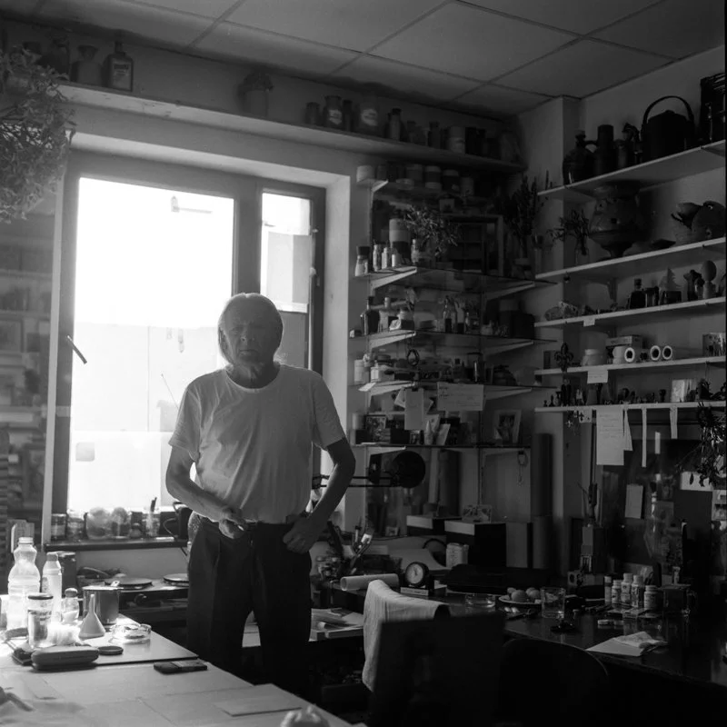 As I stepped into Ripi's studio, I was immediately struck by the so well-known serene atmosphere and the warm embrace of natural light pouring in through the large window. There was a sense of timeless creativity in the air, an ambiance that only an artist's workspace could offer. The walls, adorned with an array of captivating paintings, photographs, and carefully curated objects, hinted the depth of Stanciu's creative journey.